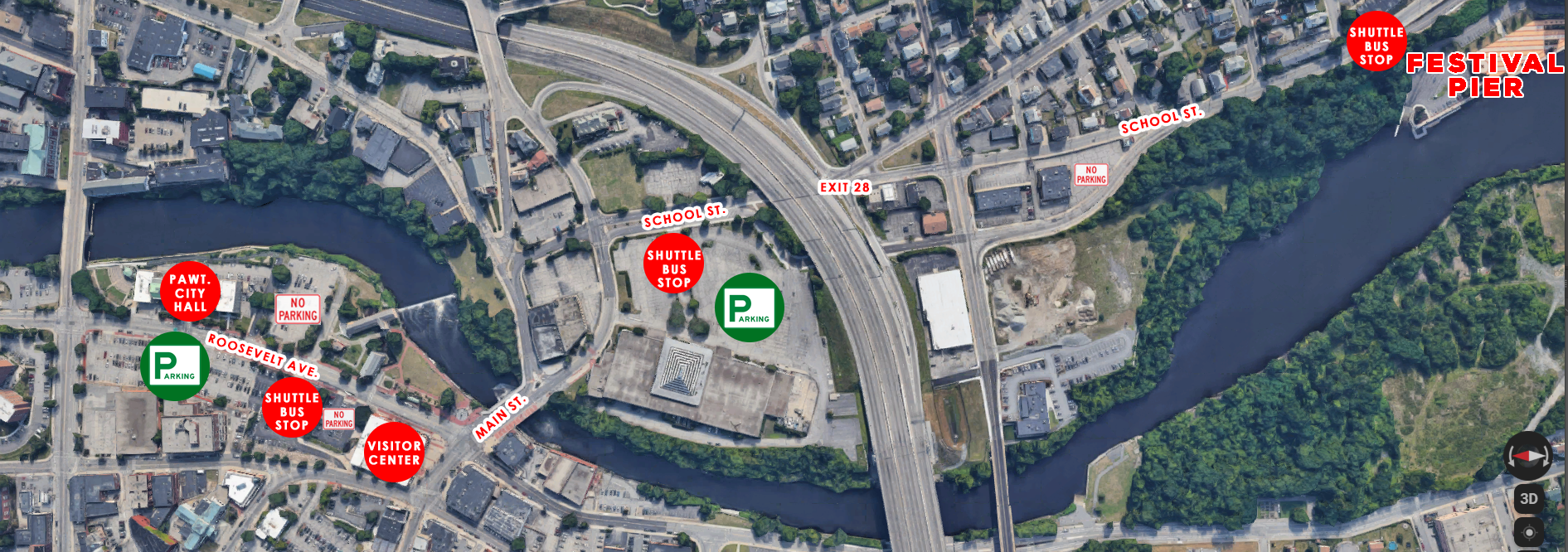 There is NO PARKING at Festival Pier, NO PARKING at Blackstone Valley Medical Building, and NO PARKING at the former Memorial Hospital Lots.