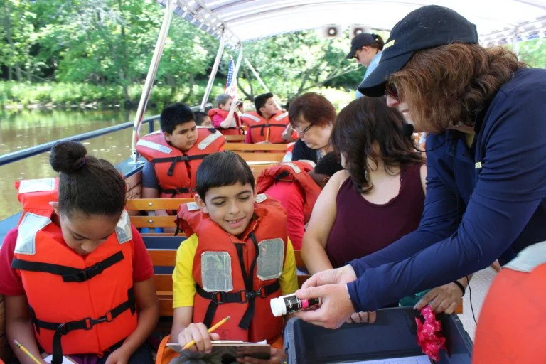What is RiverClassroom? RiverClassroom programs are a hands-on outdoor environmental educational experience developed by the Blackstone Valley Tourism Council, and now done in collaboration with Mystic Aquarium educators. The program provides students with an opportunity to learn about the natural, cultural, and historical aspects of the Blackstone River Valley. In addition, programs can be specialized according to teacher’s requests and grade level needs. This very popular program takes place aboard the Coast Guard certified Explorer riverboat and gets students engaged with the surroundings that many have yet to discover.